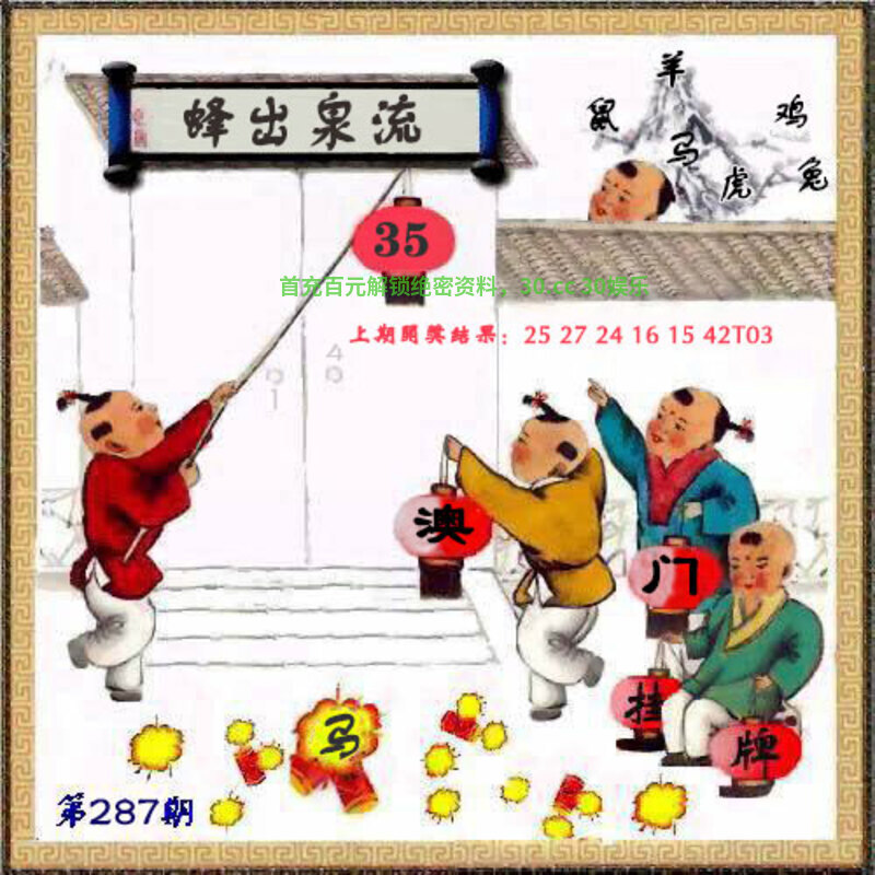 287期【挂牌】《蜂出泉流》 解释:像群蜂倾巢,如泉水涌流。形容一时并作。 解料:一时并作解合肖兔虎牛鼠羊马,挂:35爆:马。 七肖:马羊狗龙蛇猴猪 |